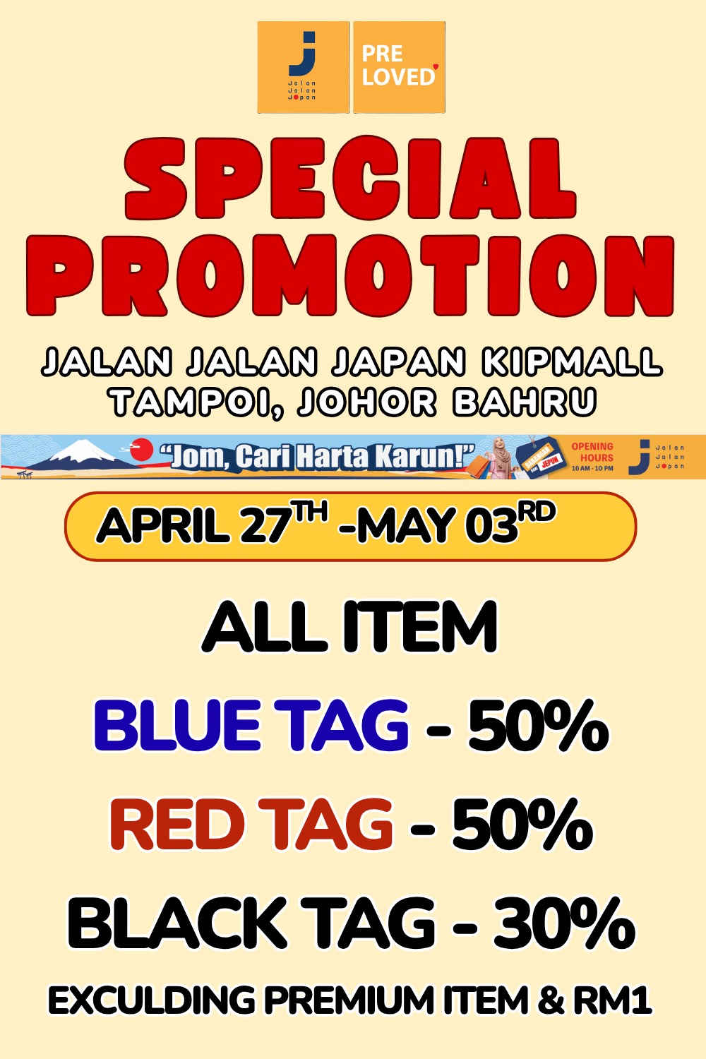 “BOOKOFF” buy goods from customers, and sell them to other customers. We buy much more than we sell due to it’s strong brand. Goods in Jalan Jalan Japan are all from “BOOKOFF” Japan. So, we can sell many goods by crazy low price.